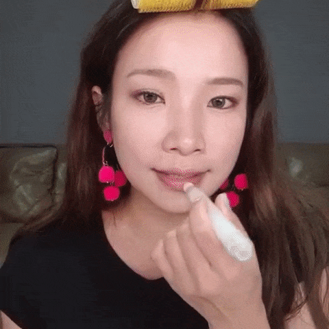 妞會從唇峰、下唇外緣中央開始往兩邊擦過,
