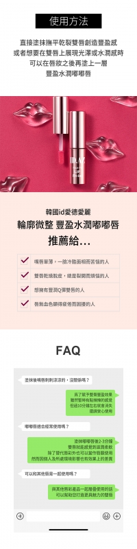 想要雙唇豐滿感或滋潤嘴唇滋時使用,也可疊擦唇彩使用